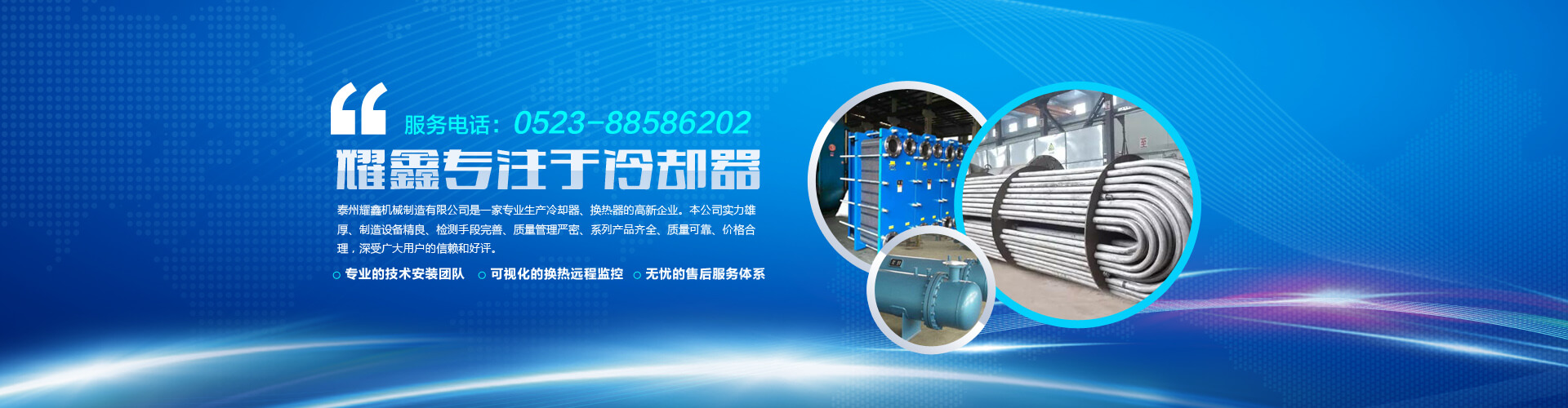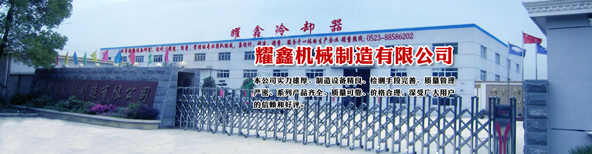 免費(fèi)咨詢方案 +泰州耀鑫機(jī)械制造有限公司座落于風(fēng)景如畫的江蘇魚米之鄉(xiāng)--全國文明城鎮(zhèn)婁莊鎮(zhèn),是一家專業(yè)生產(chǎn)風(fēng)冷卻器、列管式冷卻器、板式冷卻器的企業(yè)。本公司實(shí)力雄厚、制造設(shè)備精良、檢測手段完善、質(zhì)量管理嚴(yán)密、系列產(chǎn)品齊全、質(zhì)量可靠、價格合理,深受廣大用戶的信賴和好評。